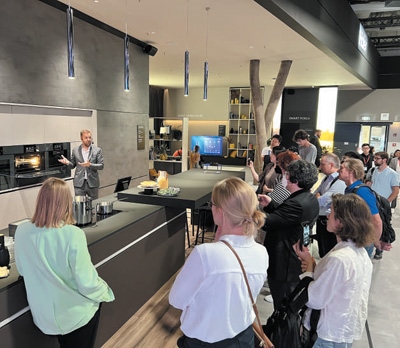 在2022年柏林國際消費(fèi)電子展期間,參觀者在卡薩帝展臺前了解智能廚房設(shè)備。本報(bào)記者 李 強(qiáng)攝