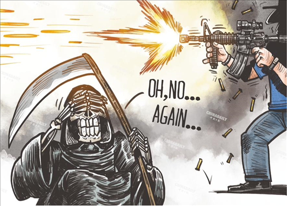 校園槍擊這一惡性事件漸成美國常態(tài)令人膽寒。(圖片來源:中國日報)