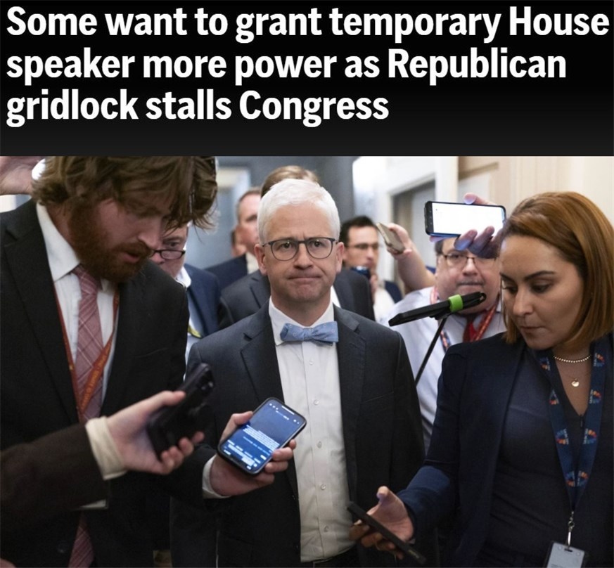 在此之前,為確保眾議院“正常履職”,有人提出當務之急是擴大麥克亨利的職權(quán)。不過,一些共和黨議員對此并不感興趣,認為在預算和其他重大政策方面,為臨時議長擴權(quán)并不是有效的做法。
