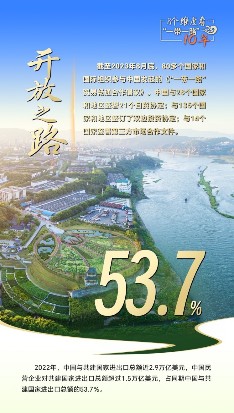 2023年是共建“一帶一路”倡議提出十周年,也是全面貫徹落實(shí)黨的二十大精神的開局之年。黨的二十大報(bào)告提出:“推動(dòng)共建‘一帶一路’高質(zhì)量發(fā)展?!睆男缕瘘c(diǎn)再出發(fā),高質(zhì)量共建“一帶一路”,在和平之路、繁榮之路、開放之路、創(chuàng)新之路、文明之路、健康之路、綠色之路和數(shù)字之路上繼續(xù)扎實(shí)推進(jìn),攜手世界合作共贏、共同發(fā)展,擘畫攜手共建人類命運(yùn)共同體新藍(lán)圖。