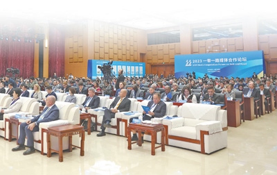| 2023“一帶一路”媒體合作論壇開幕式現(xiàn)場。本報記者 蔣雨師攝 |