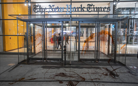 另?yè)?jù)《以色列時(shí)報(bào)》報(bào)道,還有示威者在《紐約時(shí)報(bào)》總部大樓外集會(huì)并在大樓入口處潑上紅色顏料,這些示威者認(rèn)為《紐約時(shí)報(bào)》關(guān)于巴以新一輪沖突的報(bào)道偏袒以色列。