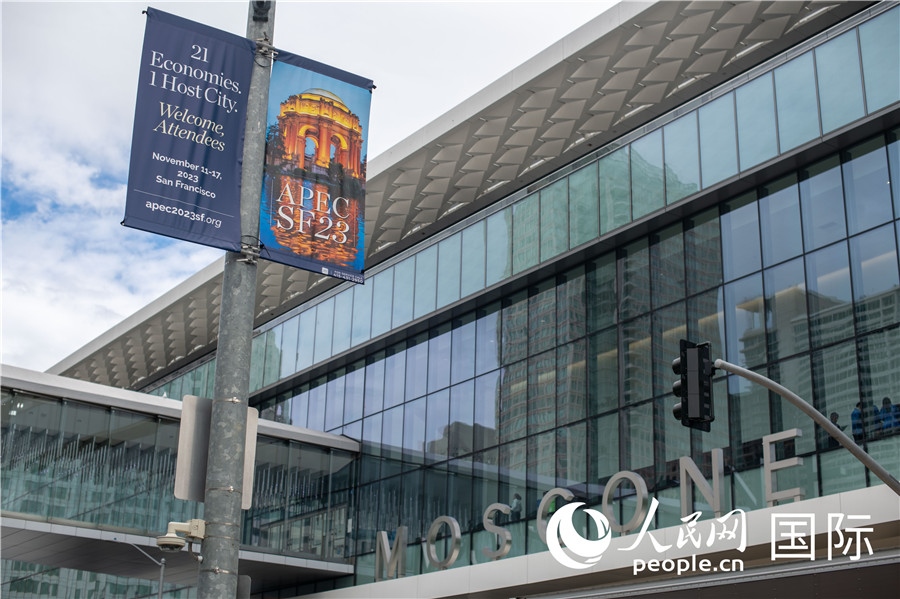 當(dāng)?shù)貢r間11月16日,美國舊金山,在APEC國際媒體中心,媒體記者忙碌工作。