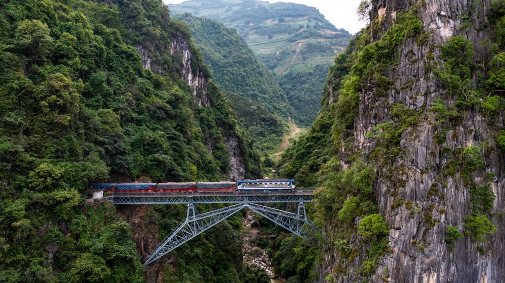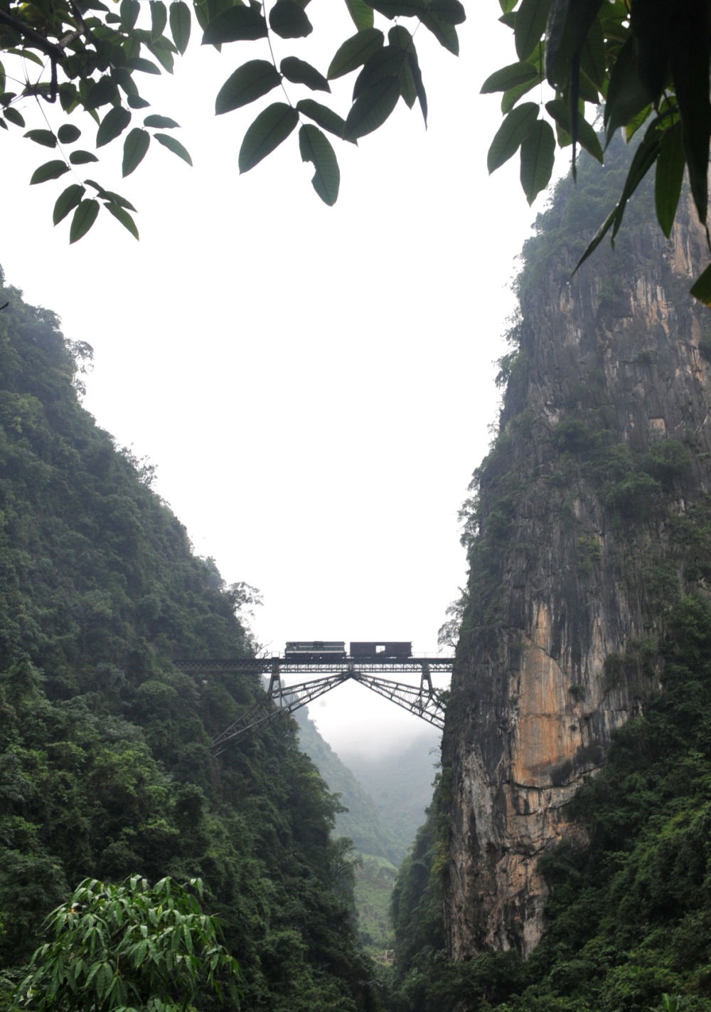 這是行駛在滇越鐵路云南省屏邊縣境內(nèi)的貨運列車(2012年3月9日攝)。
