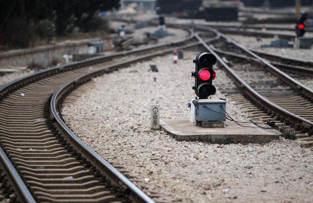這是2012年3月2日在云南昆明王家營車站拍攝的滇越鐵路米軌軌道。