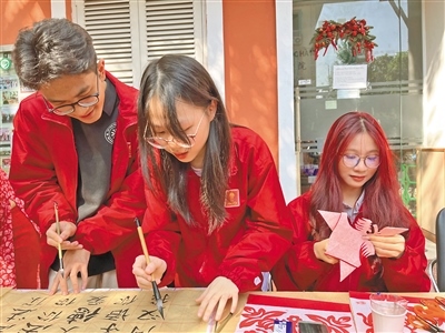 12月8日,在河內(nèi)大學(xué)孔子學(xué)院舉行的文化體驗活動中,越南大學(xué)生體驗中國書法和剪紙。本報記者 張遠南攝
