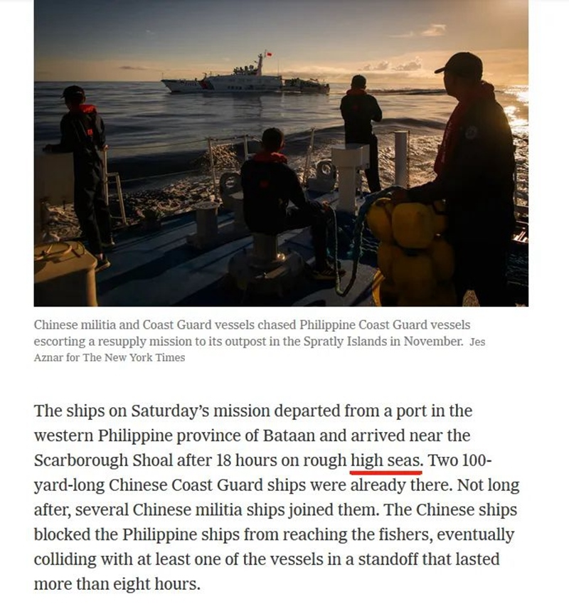 事件發(fā)生后,《紐約時(shí)報(bào)》也按計(jì)劃“交差”,刊發(fā)文章“力挺”菲方,試圖把中方塑造成“霸凌者”,在國際輿論上為菲方博取更多同情,向中方施加更大壓力。