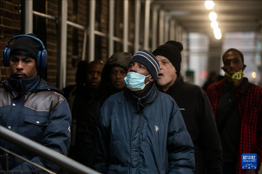 12月24日,在美國紐約,民眾在“紐約公共食品儲藏室”排隊領(lǐng)取免費食品。新華社發(fā)(郭克攝)