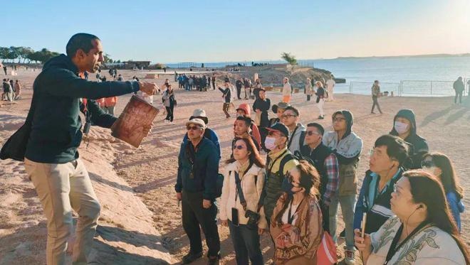 阿巴斯向中國(guó)游客介紹當(dāng)?shù)鼐包c(diǎn)。黃培昭攝