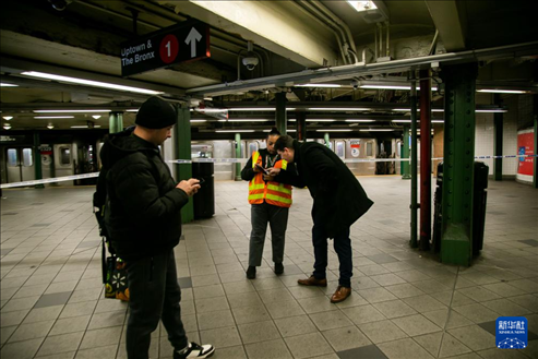 1月4日,在美國(guó)紐約,警察引導(dǎo)一名乘客換乘其他交通工具。新華社發(fā)(郭克攝)