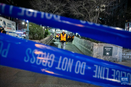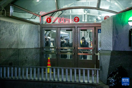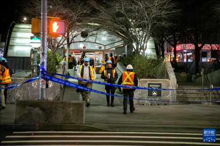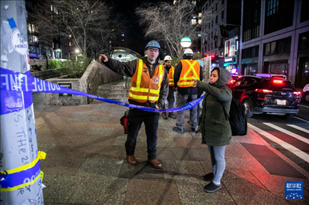 1月4日,在美國(guó)紐約,工作人員在列車(chē)脫軌事故現(xiàn)場(chǎng)外工作。新華社發(fā)(郭克攝)