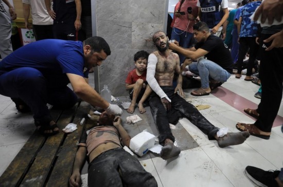 2023年10月23日,在加沙城一家醫(yī)院,醫(yī)護(hù)人員為傷者治療。新華社發(fā)(亞西爾·庫(kù)迪攝)