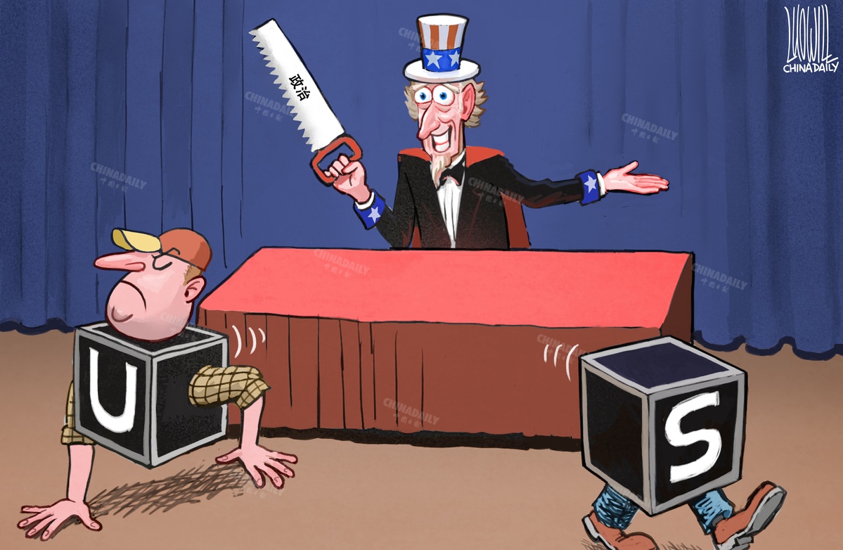 美國政治導(dǎo)致社會(huì)分裂。(來源:中國日報(bào) 作者:羅杰)