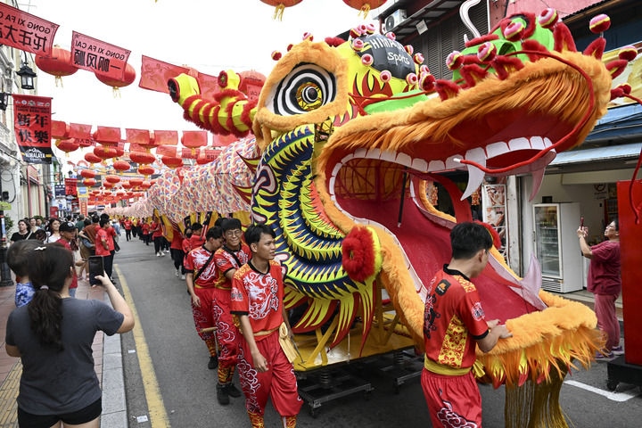 從各國(guó)使節(jié)在聯(lián)合國(guó)體驗(yàn)包餃子、寫(xiě)福字,到瑞士日內(nèi)瓦萬(wàn)國(guó)宮高懸起大紅燈籠,從新加坡“春到河畔”的巨龍燈飾熠熠生輝,到馬來(lái)西亞馬六甲的百余少年共舞長(zhǎng)龍……天下同春,龍年的祝福正從四面八方傳來(lái)。