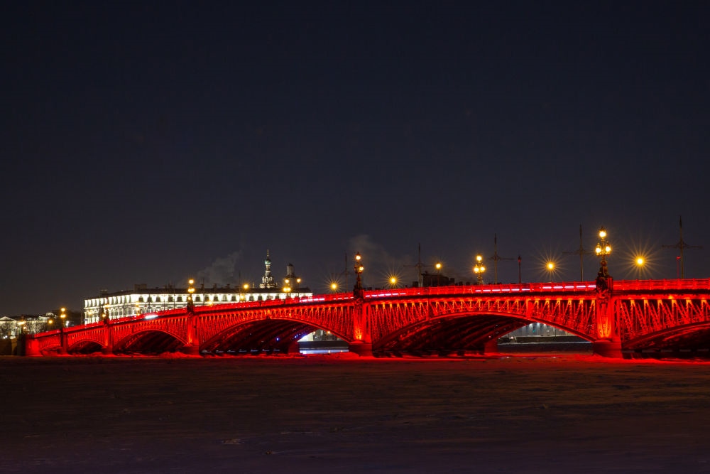 2月9日,俄羅斯圣彼得堡市中心的圣三一橋亮起“中國(guó)紅”,慶祝中國(guó)龍年春節(jié)。新華社發(fā)(莫京娜攝)