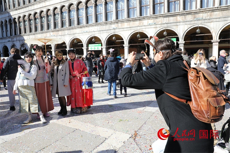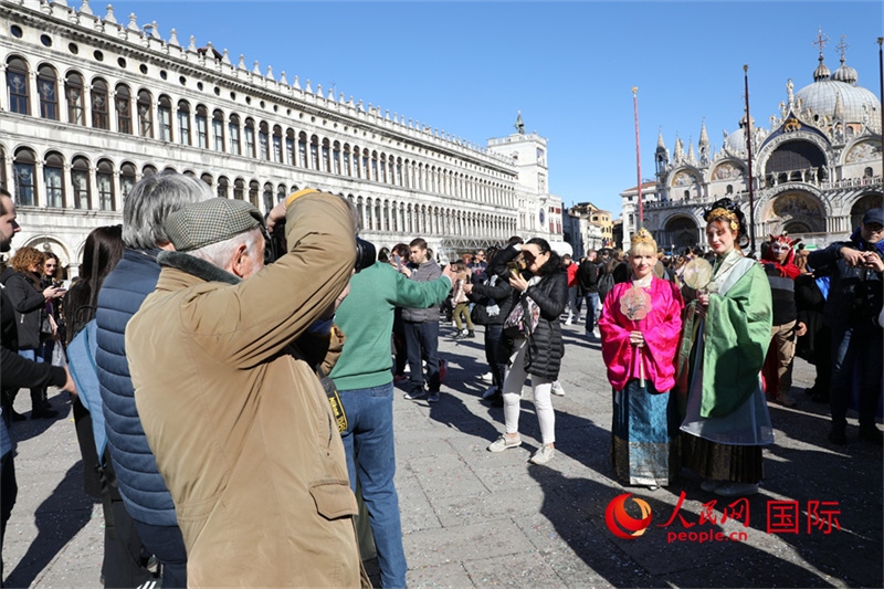 人民網(wǎng)威尼斯2月14日電 (記者謝亞宏)2月13日,為期兩周的年度威尼斯狂歡節(jié)迎來最后一天,期間舉行了威尼斯大學孔子學院與蘇州絲綢博物館合作主辦的漢服巡游活動。