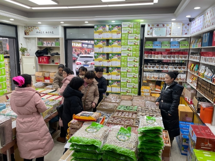 這是湖南長沙高橋大市場堅果經(jīng)銷商李海麗在整理貨物。新華社記者 余春生 攝