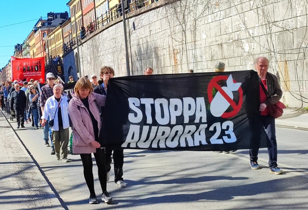 2023年4月22日,人們在瑞典斯德哥爾摩參加抗議活動。瑞典全國近20個城市當日舉行活動,抗議在瑞典舉行大規(guī)模國際軍事演習、反對瑞典加入北約。新華社發(fā)(帕特里克·埃克斯特蘭德攝)