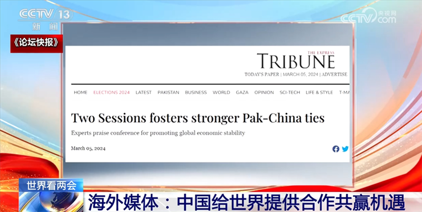 央視網(wǎng)消息:連日來,海外媒體對中國兩會的關(guān)注持續(xù)升溫,中國經(jīng)濟、合作共贏成為了海外媒體報道中國兩會的關(guān)鍵詞。