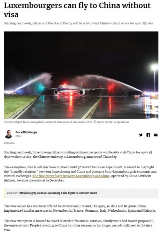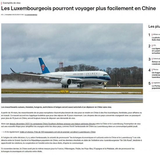 盧森堡廣播電視臺、《日報》、《盧森堡時報》、編年史、逗號網(wǎng)等當(dāng)?shù)馗鞔笾髁髅襟w、網(wǎng)站迅速報道免簽消息,認(rèn)為兩國開通客運(yùn)直航和中方對盧實施免簽政策是盧中“空中絲綢之路”建設(shè)取得的新成果,將進(jìn)一步便利兩國人員往來,促進(jìn)各領(lǐng)域交流合作。盧工商界和民眾對免簽政策落地感到欣喜,期待赴華參訪旅游,開展更多務(wù)實合作。