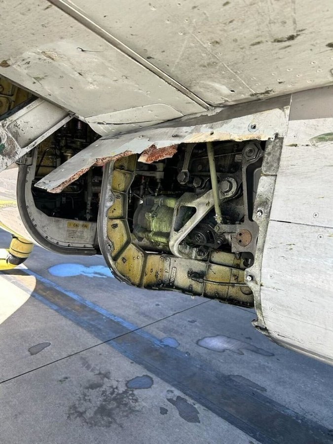 △當?shù)貢r間15日,美聯(lián)航一架波音737-800客機降落后,被發(fā)現(xiàn)機身外部缺失一塊面板