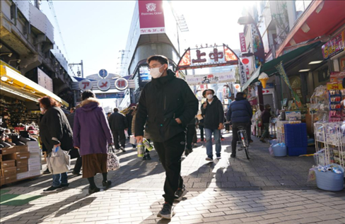 2021年12月28日,人們在日本東京阿美橫町購買促銷商品。新華社發(fā)(克里斯托弗·朱攝)