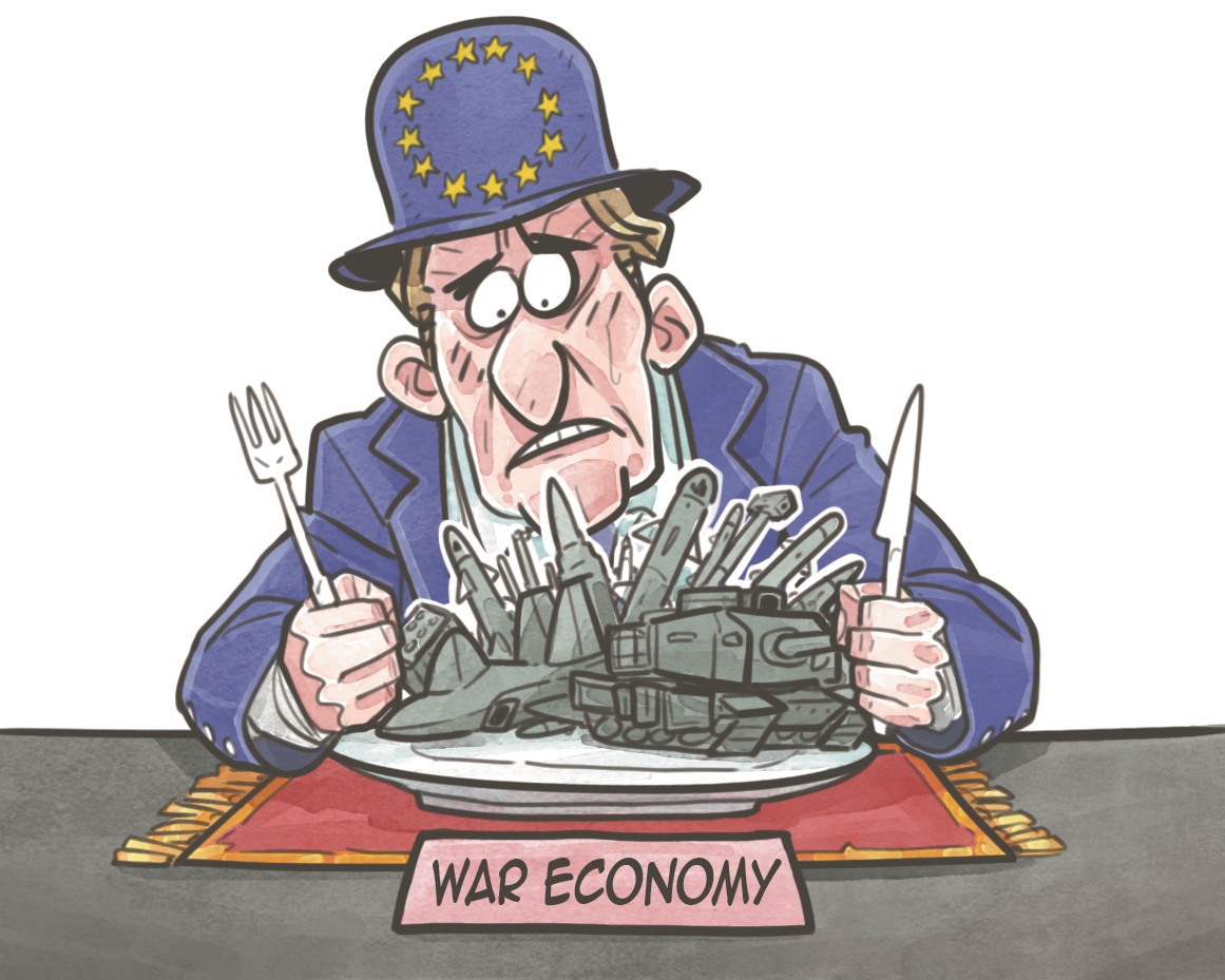 歐洲正陷入“戰(zhàn)爭經(jīng)濟(jì)困境”風(fēng)險。(來源:中國日報 蔡艨 英文《中國日報》2024年3月28日8版)