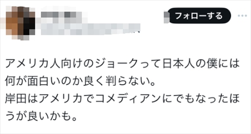 也有人說(shuō),“跟美國(guó)人講的這些笑話,作為日本人的我是真不知道好笑在哪里,可能岸田在美國(guó)當(dāng)個(gè)搞笑藝人比較好。”