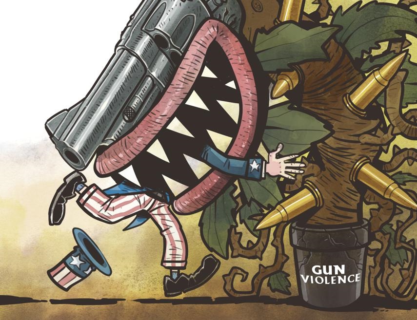 過于頻繁的各類槍支暴力事件已經(jīng)將美國社會(huì)吞沒。(作者:中國日?qǐng)?bào) 蔡艨)