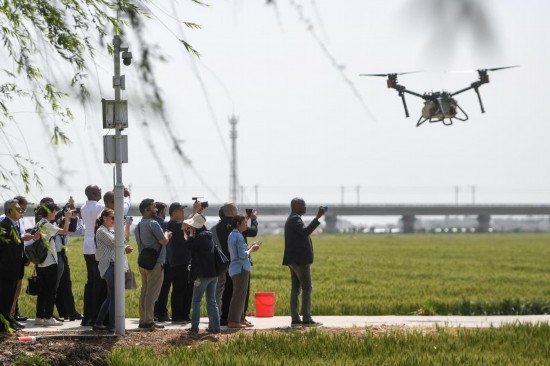 在湖北綠神農(nóng)業(yè)科技有限公司的麥田里,青綠的麥穗隨風(fēng)搖動,無人植保機(jī)往來穿梭噴灑葉面肥;在水稻育秧現(xiàn)場,秧盤源源不斷地從自動育秧生產(chǎn)線下線……在蘇里南駐華大使張碧芬看來,智慧農(nóng)業(yè)技術(shù)能大大節(jié)省人力,提高效率?!八驹谔K里南廣泛種植,我們想和湖北企業(yè)合作,把智慧農(nóng)業(yè)技術(shù)引進(jìn)到蘇里南。”她說。
