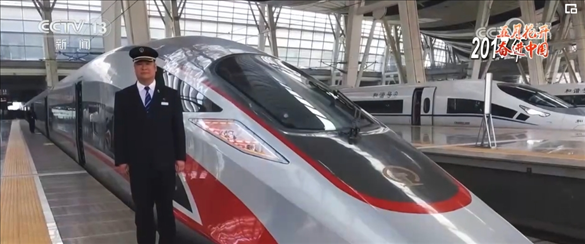 2017年,韓軍甲作為駕駛員參加了京滬高鐵的跑核試驗,為這條線路按時速350公里運(yùn)營提供了有力的數(shù)據(jù)參考。隨后不久,“復(fù)興號”在京滬高鐵上首發(fā),中國成為了世界上高速鐵路商業(yè)運(yùn)營速度最高的國家。這張2017年與復(fù)興號列車的合影對于韓軍甲來說也有著特殊的意義。