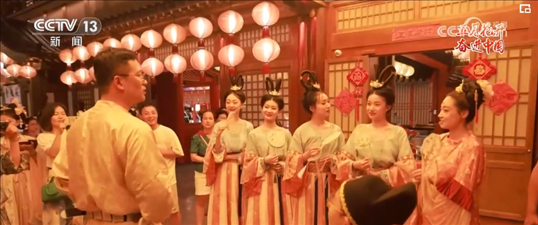 看起來對漢服造型頗有研究的胡芯銀今年只有24歲。胡芯銀介紹,也就是在這幾年,隨著大家對傳統(tǒng)文化的喜愛,西安的漢服館如雨后春筍般涌現(xiàn)。感受到“漢服熱”的胡芯銀在2022年初,辭去了原先婚禮跟妝的工作,應(yīng)聘到了這家位于長安十二時辰主題街區(qū)附近的漢服館,擔(dān)任漢服造型師。