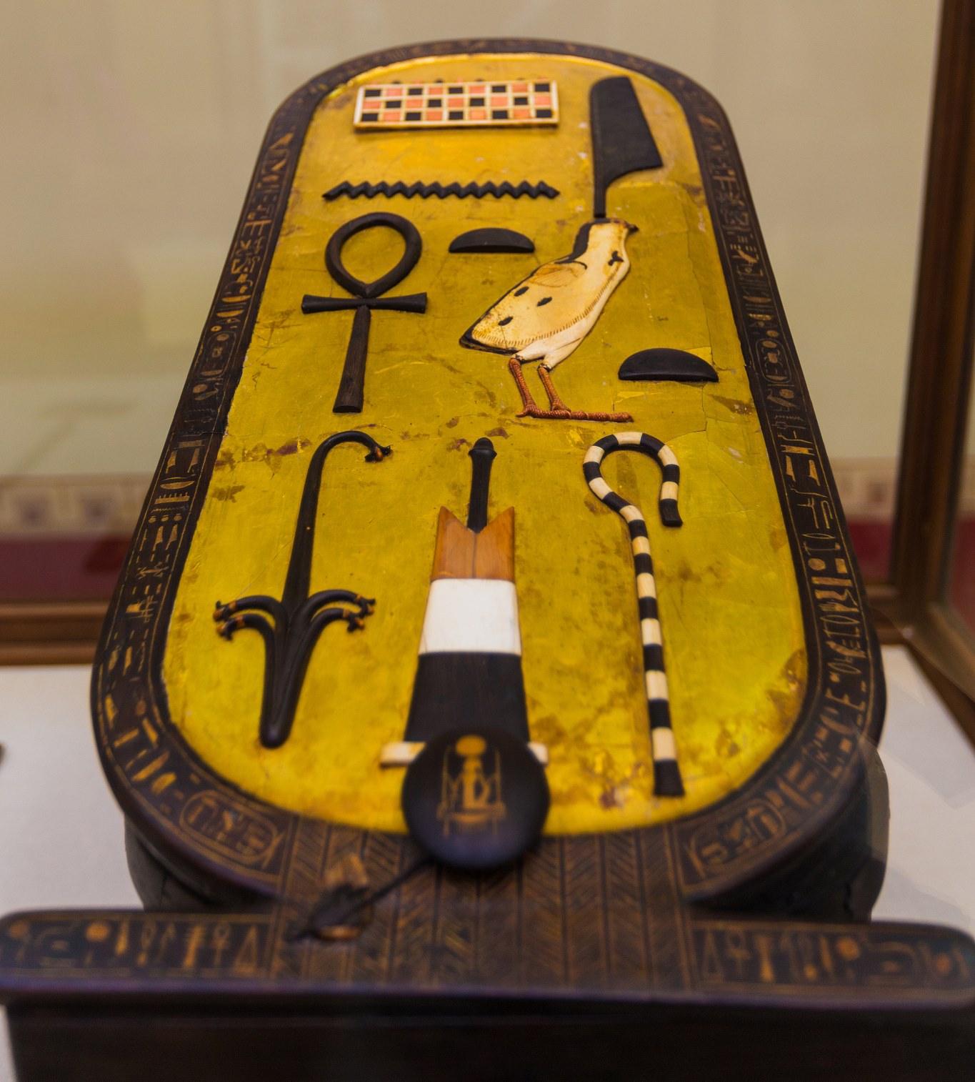 埃及博物館陳列的用象形文字寫的法老圖坦卡蒙的金牌