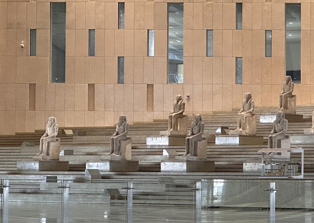當(dāng)?shù)貢r(shí)間2023年11月28日,大埃及博物館大廳中的雕塑。