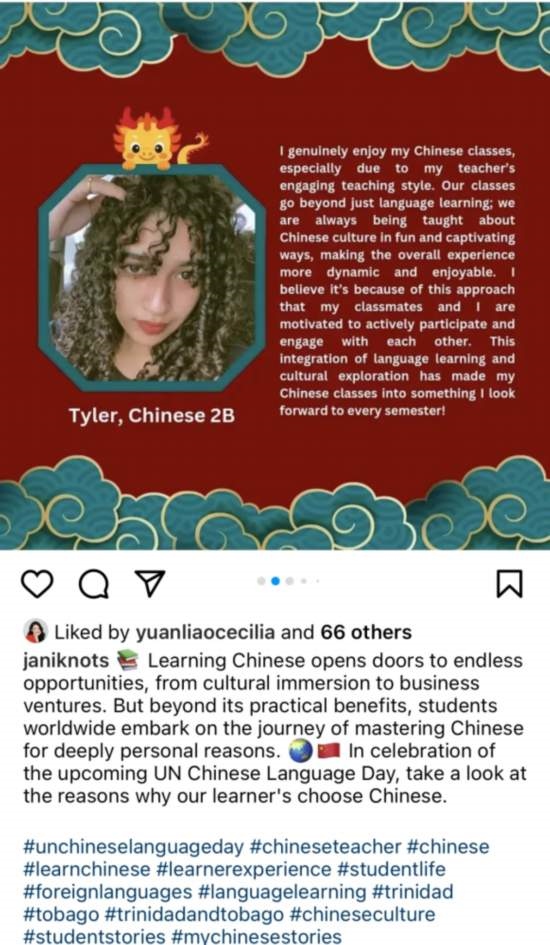 另外,在互聯(lián)網(wǎng)的浸潤下成長起來的海外“Z世代”也對(duì)中文和中國文化熱情洋溢。阿富汗的中文學(xué)習(xí)者Sediqi Khawaja Abdul Nasir認(rèn)為,“中文的學(xué)習(xí)不僅僅是掌握詞匯和語法,更是理解一個(gè)國家和一個(gè)民族的心靈?!碧亓⒛徇_(dá)和多巴哥的Janine Lutchman從中文學(xué)習(xí)者成長為本土教師,分享著她感染學(xué)生學(xué)習(xí)中文的點(diǎn)滴故事。此外,緬甸籍學(xué)生黃俊杰Thet Paing Phyo、土耳其籍中文學(xué)習(xí)者王愛英Ayperi ztürk和加納籍中文學(xué)習(xí)者王富健Richmond Ayawuli、格林納達(dá)的學(xué)生們等世界各地的青年,都在活動(dòng)中為大家?guī)砬f萬動(dòng)人的“中文故事”。