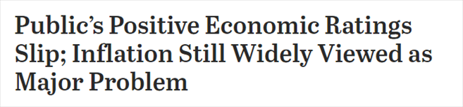 根據(jù)調(diào)查,現(xiàn)如今,只有23%的美國成年人認為經(jīng)濟狀況良好,低于一月份的28%。從兩黨來看,37%的民主黨人以及傾向于民主黨的人對經(jīng)濟持積極態(tài)度,僅10%的共和黨人及支持共和黨的人持積極態(tài)度。