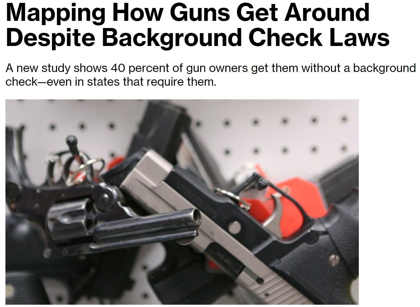 △彭博社報(bào)道:據(jù)統(tǒng)計(jì),美國(guó)至少有40%的購(gòu)槍者無(wú)需通過(guò)背景審查。