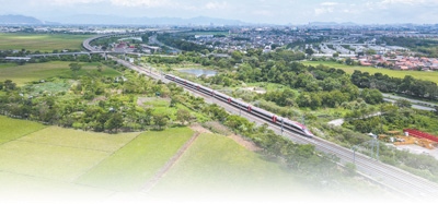 在印度尼西亞萬隆,一列雅萬高鐵高速動車組正在行駛中。新華社記者 徐 欽攝