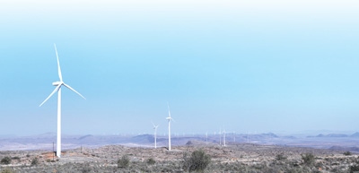 位于南非北開普省德阿鎮(zhèn)的中國國家能源集團(tuán)龍源電力南非公司運(yùn)營的德阿風(fēng)電項目風(fēng)機(jī)。新華社記者 董江輝攝