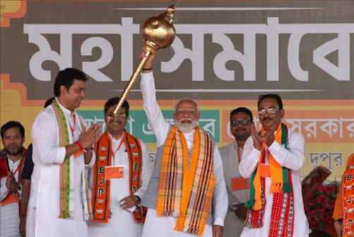 4月17日,印度特里普拉邦,莫迪在競選集會(huì)上擺pose 圖源:路透社