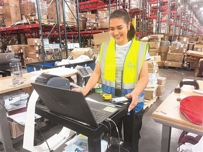 菜鳥美國新澤西海外倉操作組組長杰西卡·卡斯蒂羅說:“隨著海外倉建立的完善,越來越多的中國品牌客戶和美國本地的客戶跟我們合作備貨和配送,我們希望能讓美國的消費者體驗飛一般的中國速度?!?/P>