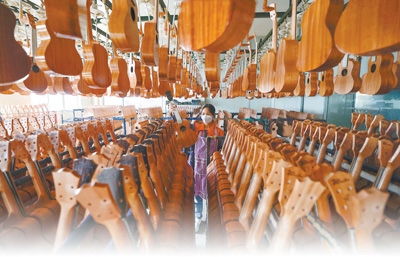 全世界每生產(chǎn)7把吉他,就有1把出自這里——正安是全球著名的吉他生產(chǎn)基地。早在2012年,了解到在該縣20萬(wàn)外出務(wù)工的人員中,有將近6萬(wàn)人集中在吉他制造領(lǐng)域,正安便開(kāi)始“筑巢引鳳”,在2013年建起了國(guó)際吉他產(chǎn)業(yè)園,號(hào)召鄉(xiāng)友返鄉(xiāng)創(chuàng)業(yè),并出臺(tái)一系列優(yōu)惠政策扶持吉他企業(yè)發(fā)展。