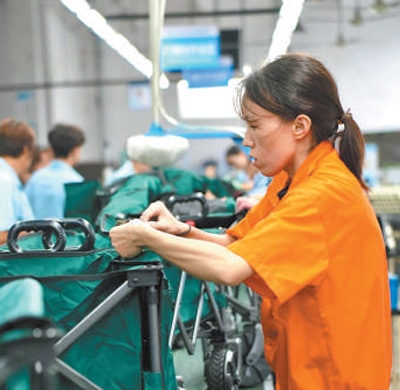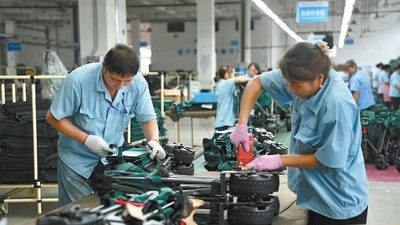 河南泰普森公司生產(chǎn)車(chē)間的工作人員正在組裝戶外小拉車(chē)。這批訂單將于10月發(fā)往美洲市場(chǎng)。本報(bào)記者 張文豪攝