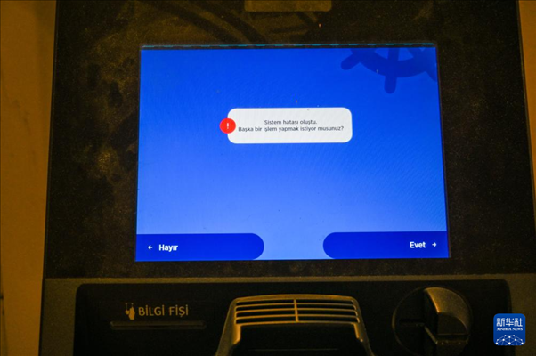 7月19日,在土耳其伊斯坦布爾的街邊,一臺自助取款機(jī)發(fā)生故障。新華社記者 劉磊 攝