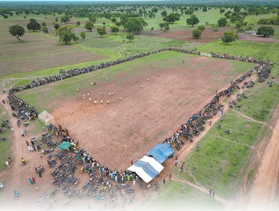 貝寧村民足球賽中,雙方球員正在足球場上拼搶。本報記者 黃培昭攝