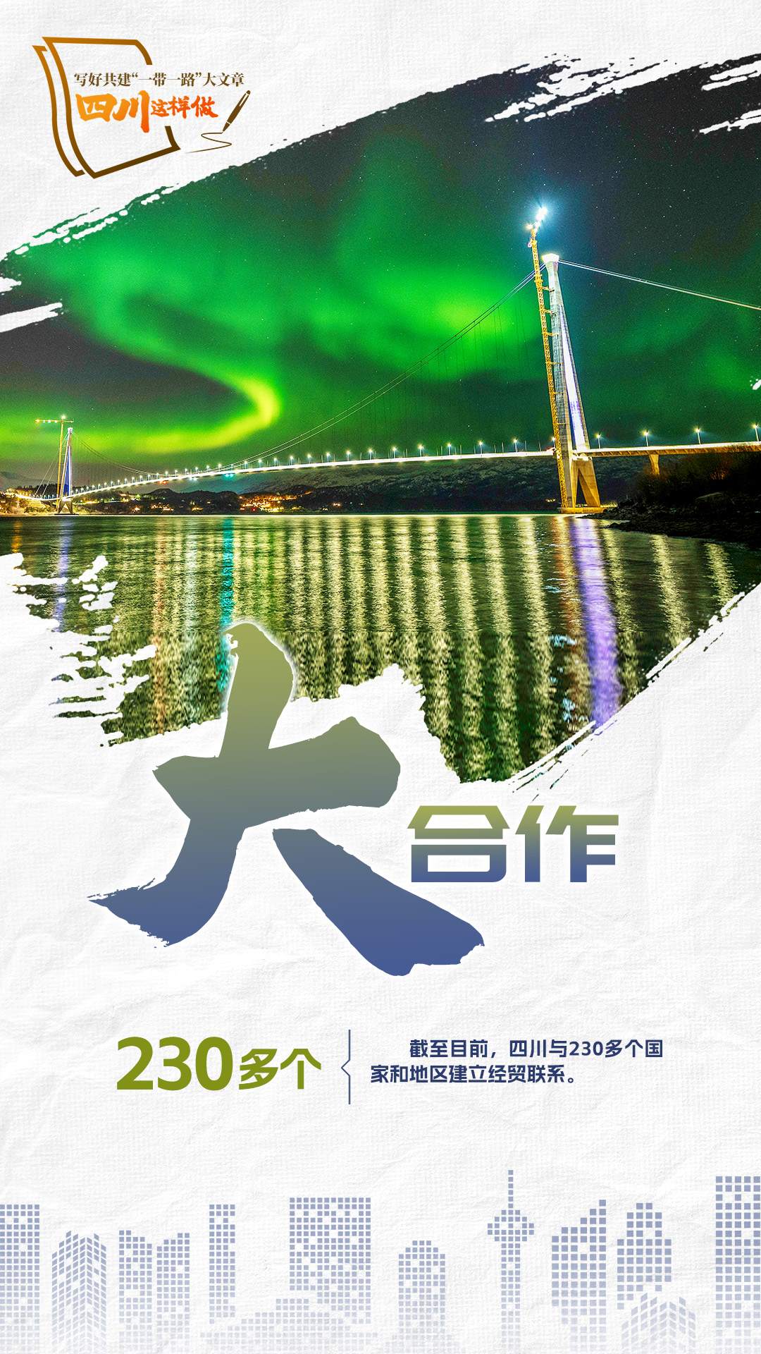 2023年,共建“一帶一路”走過第一個(gè)蓬勃十年,積極奔向更富活力的第二個(gè)“金色十年”。為推動(dòng)共建“一帶一路”更高質(zhì)量、更高水平發(fā)展,宣布中國(guó)支持高質(zhì)量共建“一帶一路”的八項(xiàng)行動(dòng),包括構(gòu)建“一帶一路”立體互聯(lián)互通網(wǎng)絡(luò)、支持建設(shè)開放型世界經(jīng)濟(jì)、開展務(wù)實(shí)合作、促進(jìn)綠色發(fā)展、推動(dòng)科技創(chuàng)新、支持民間交往、建設(shè)廉潔之路、完善“一帶一路”國(guó)際合作機(jī)制。2024年,我們將目光聚焦四川,作為內(nèi)陸開放的前沿陣地、西部大開發(fā)的戰(zhàn)略依托,看看第二個(gè)十年,四川如何寫好高質(zhì)量共建“一帶一路”大文章。