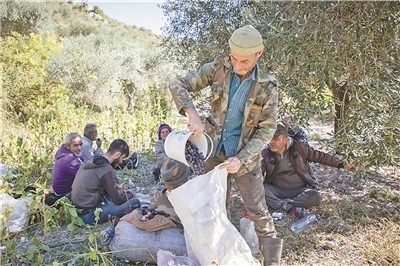 農(nóng)戶收集橄欖。
