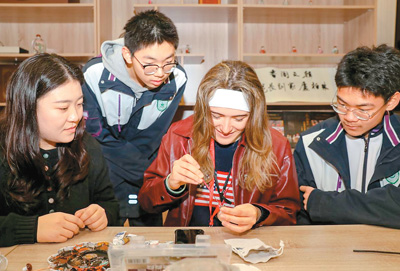 在隨后的手工環(huán)節(jié),來(lái)自美國(guó)佛羅里達(dá)州賽普萊斯灣高中的伊麗莎白·埃倫維·阿桑森體驗(yàn)了中藥香囊制作,向小伙伴們展示了自己的成果。“中藥香囊的香氣很宜人,我非常喜歡。制作過(guò)程本身就充滿(mǎn)了文化魅力?!彼f(shuō)。
