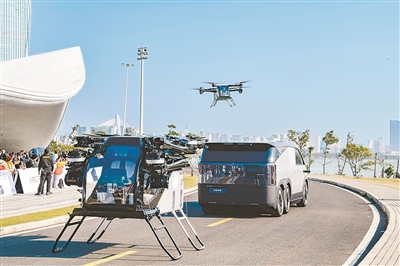 1月21日,海南飛行汽車應(yīng)用示范島項(xiàng)目在海南??趩?,小鵬匯天展示全球首款可在汽車上自動分離結(jié)合的電動純直起降飛行器。蘇弼坤攝(人民圖片)