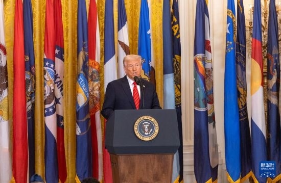3月20日,美國(guó)總統(tǒng)特朗普在華盛頓白宮簽署行政令前講話(huà)。 新華社記者 胡友松 攝